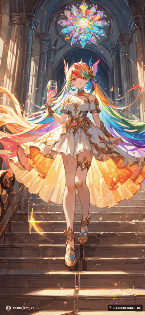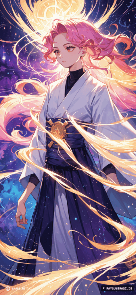 Farben, Glanz, Präsenz: Dieses KI-Bild zeigt eine Gestalt, die wie ein lebendiger Sonnenstrahl wirkt – mächtig, verspielt, fast sakral.