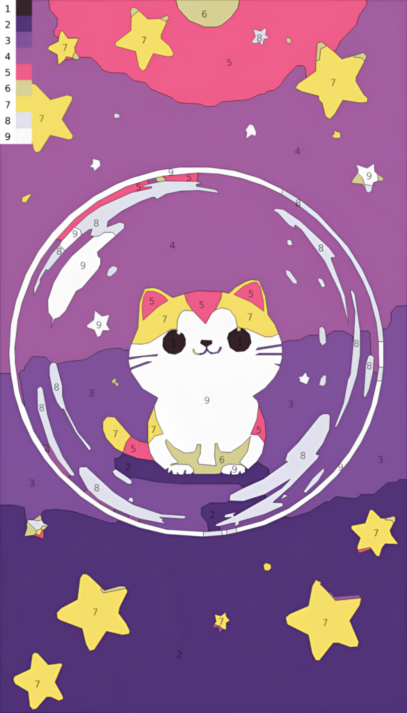 Entdecke Illustrationen, die Struktur und kreative Freiheit verbinden. Alle Motive sind als Malen-nach-Zahlen und als normale Ausmalbilder verfügbar.