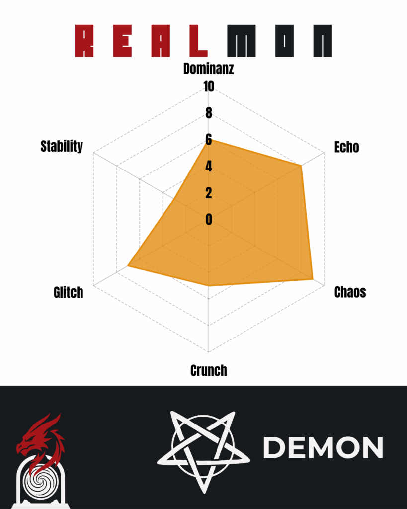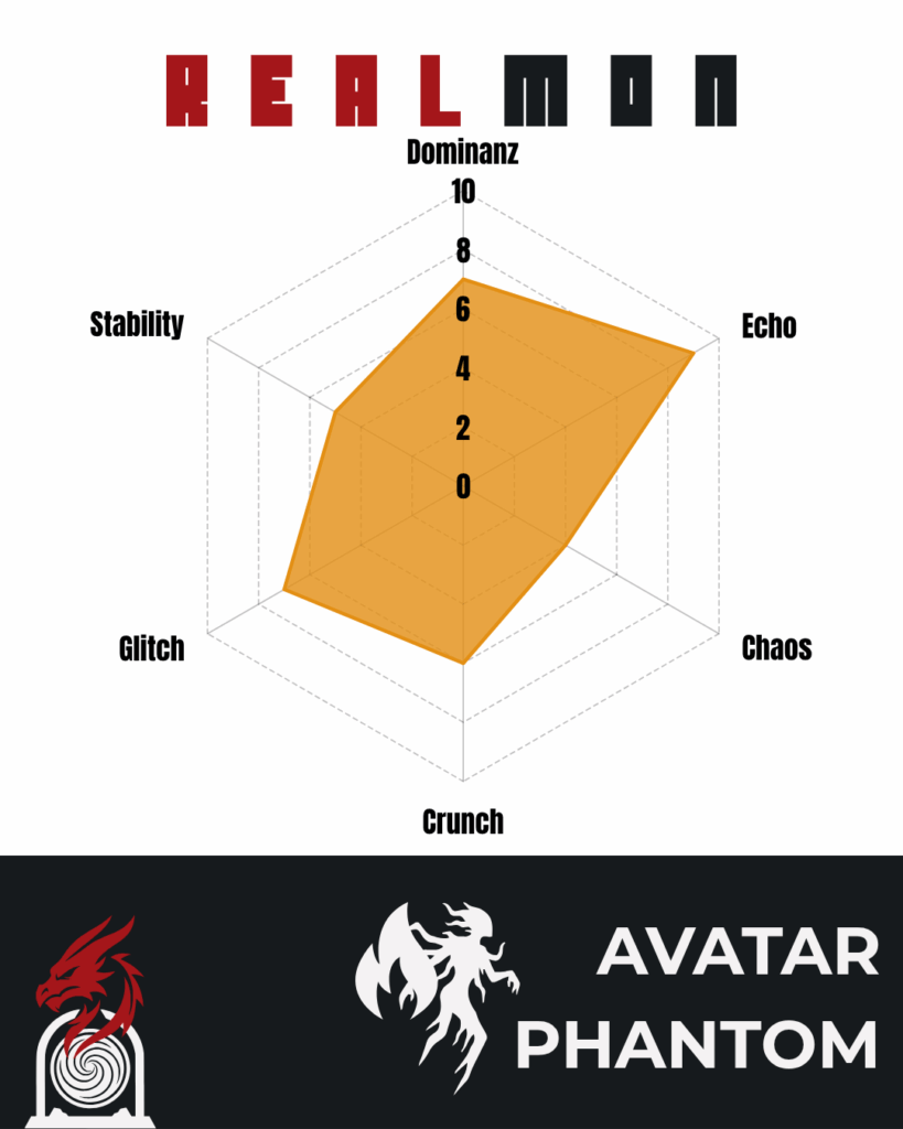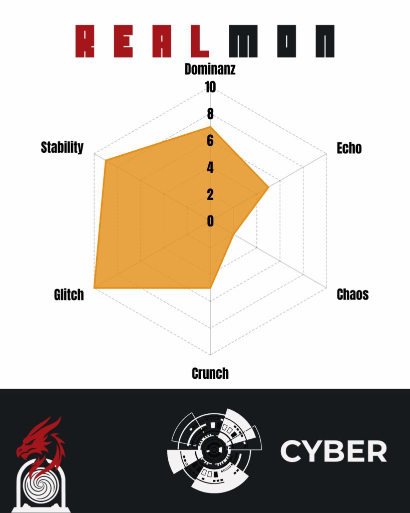 (Dominanz, Echo, Chaos, Crunch, Glitch, Stability) - Vorteil: Er darf in der Berechnung die Stufe seines Monsters würfeln und versuchen, den Realm-Bonus zu bekommen.