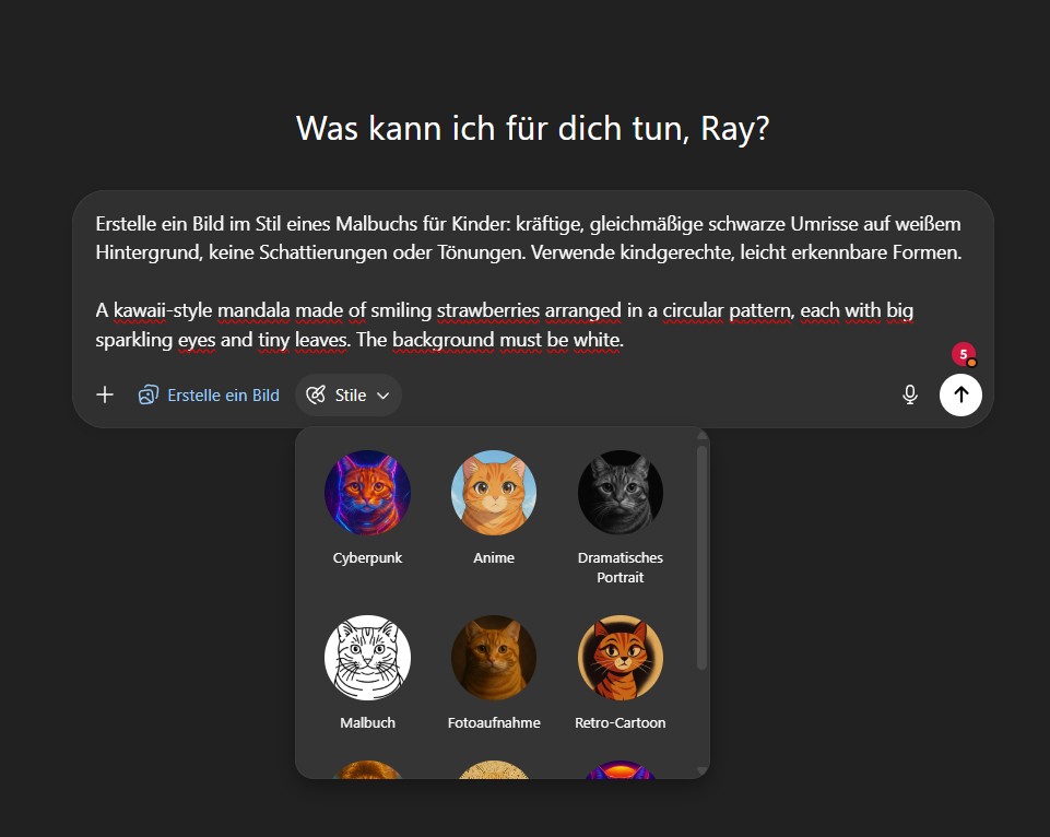 Meine erste Idee: Einfach direkt perfekte Mandala- oder Malbilder über Prompts generieren.