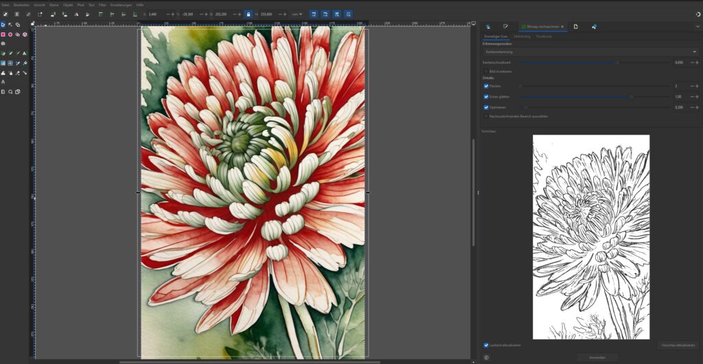 Damit spart man sich sogar die manuelle Nacharbeit in Inkscape – perfekt, wenn man viele Motive automatisiert verarbeiten will.